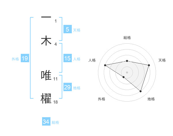 一木 唯櫂さんの天格は5画の4点!