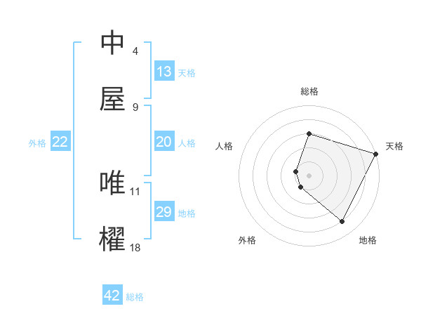 中屋 唯櫂さんの総格は42画の3点!