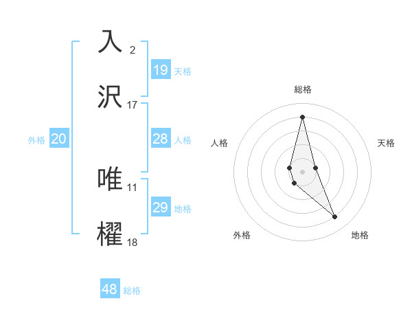 入沢 唯櫂さんの総格は48画の4点!