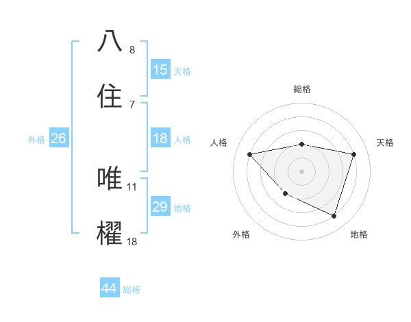 八住 唯櫂さんの天格は15画の4点!
