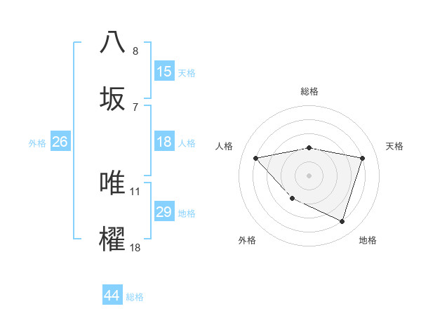 八坂 唯櫂さんの総格は44画の2点!