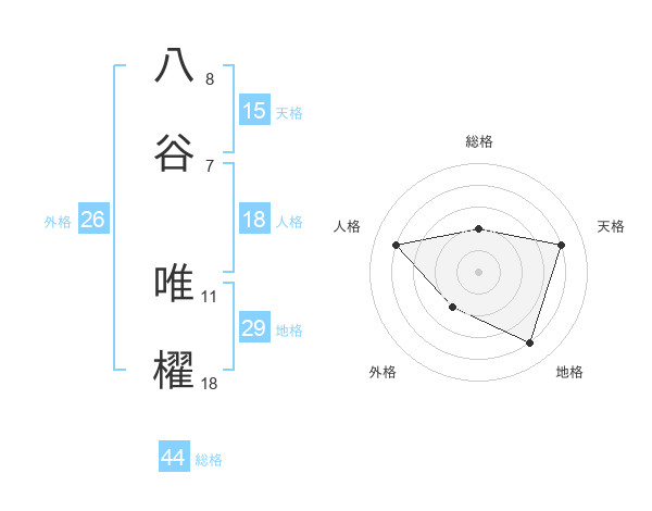 八谷 唯櫂さんの天格は15画の4点!