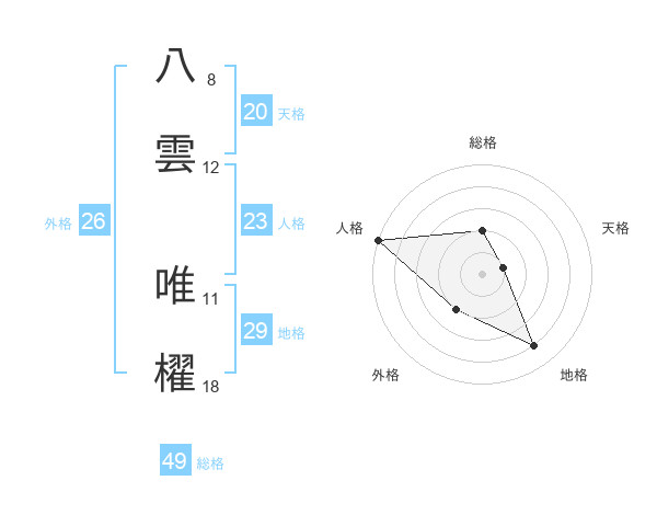 八雲 唯櫂さんの総格は49画の2点!