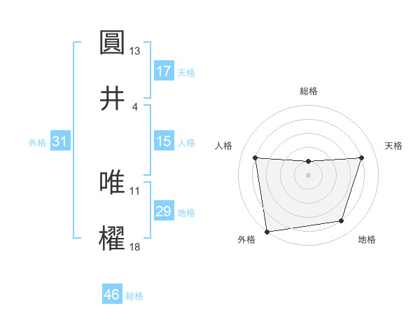 圓井 唯櫂さんの地格は29画の4点!