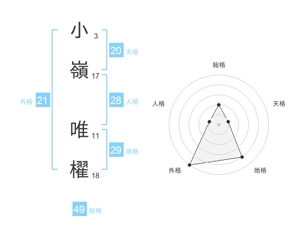 小嶺 唯櫂さんの外格は21画の5点!