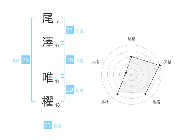 尾澤 唯櫂さんの天格は24画の5点!