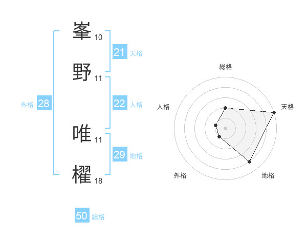 峯野 唯櫂さんの総格は50画の2点!
