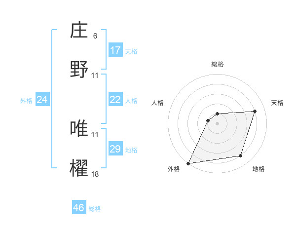 庄野 唯櫂さんの外格は24画の5点!