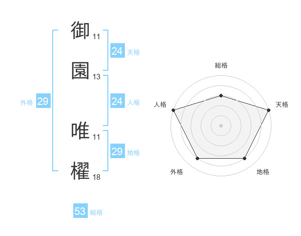 御園 唯櫂さんの総格は53画の3点!