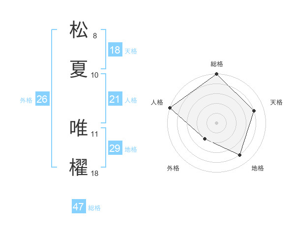 松夏 唯櫂さんの総格は47画の5点!