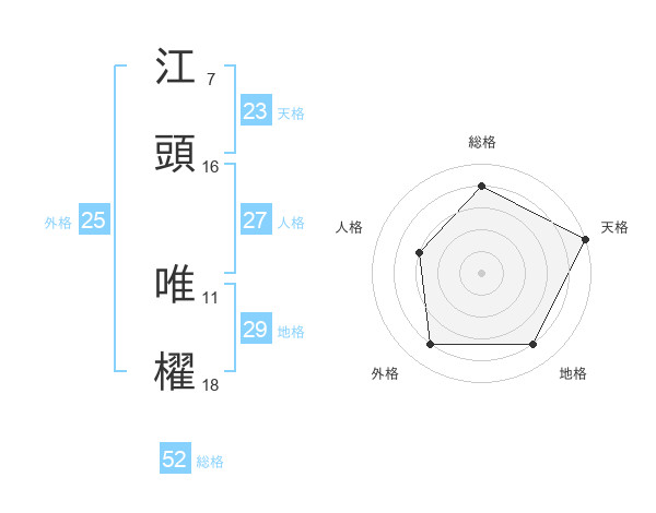 江頭 唯櫂さんの総格は52画の4点!