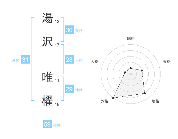 湯沢 唯櫂さんの外格は31画の5点!