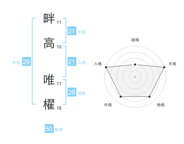 畔高 唯櫂さんを姓名の画数から五運を鑑定