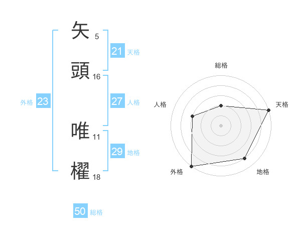 矢頭 唯櫂さんの総格は50画の2点!