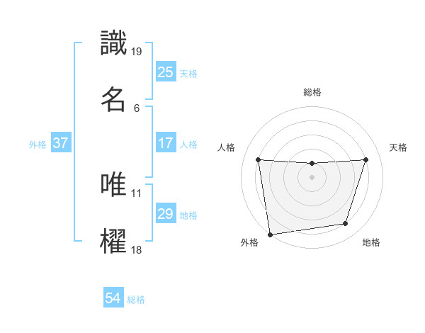 識名 唯櫂さんの外格は37画の5点!