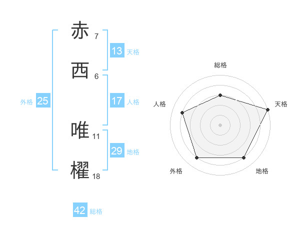 赤西 唯櫂さんの天格は13画の5点!