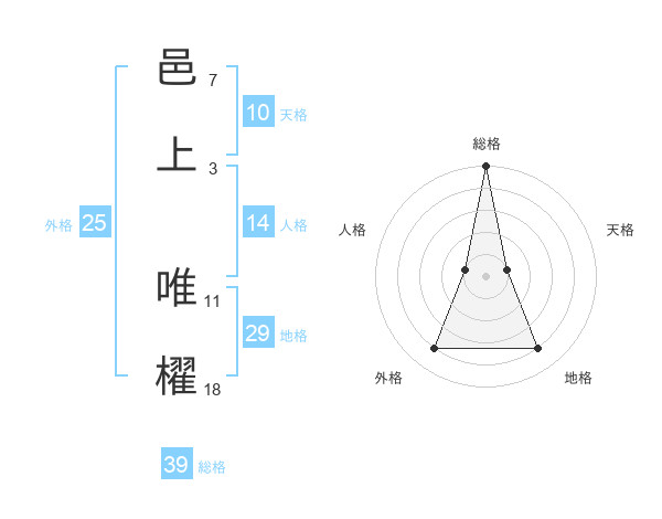 邑上 唯櫂さんの総格は39画の5点!