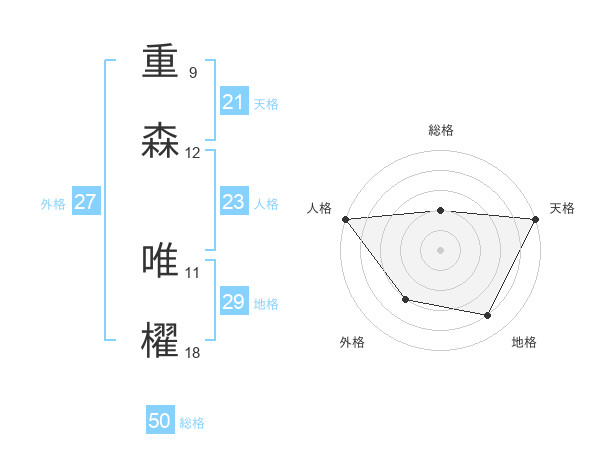 重森 唯櫂さんの総格は50画の2点!