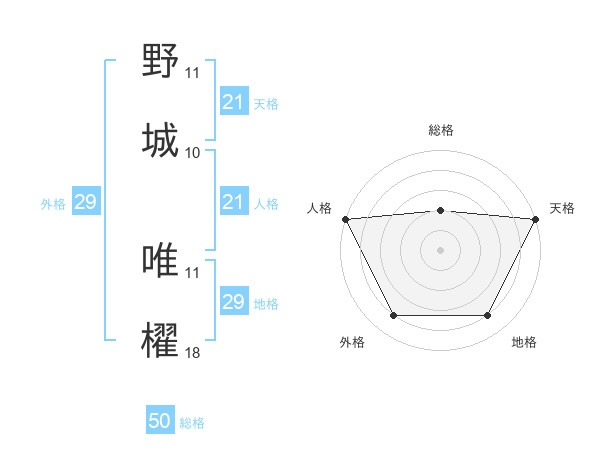 野城 唯櫂さんを姓名の画数から五運を鑑定