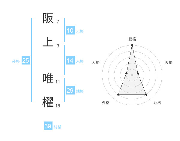 阪上 唯櫂さんの地格は29画の4点!