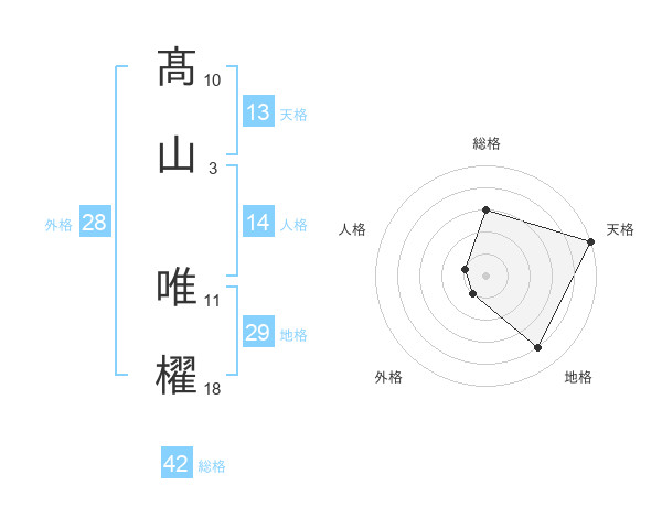 髙山 唯櫂さんを姓名の画数から五運を鑑定