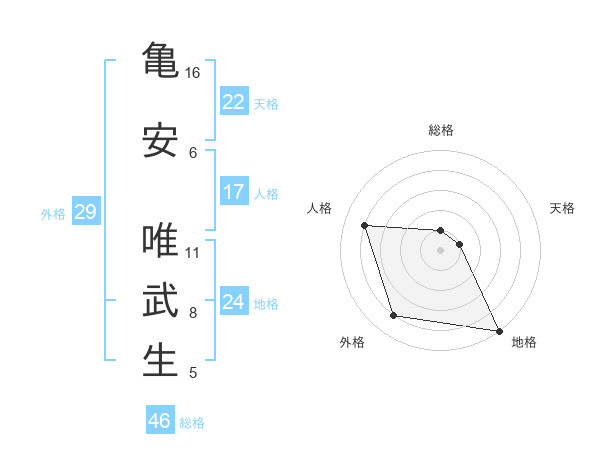 亀安 唯武生さんを姓名の画数から五運を鑑定