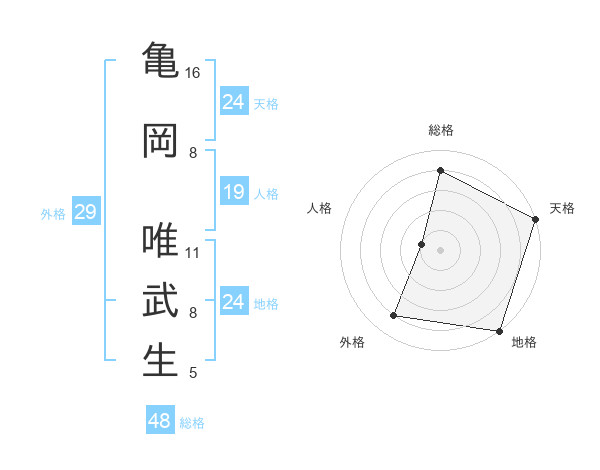 亀岡 唯武生さんを姓名の画数から五運を鑑定