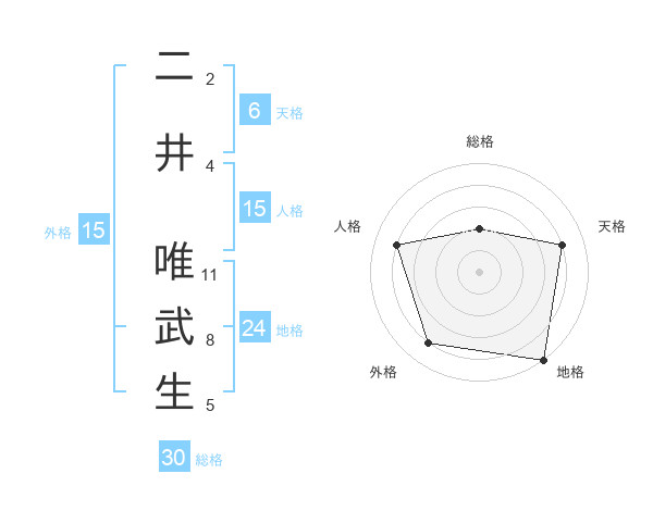 二井 唯武生さんを姓名の画数から五運を鑑定