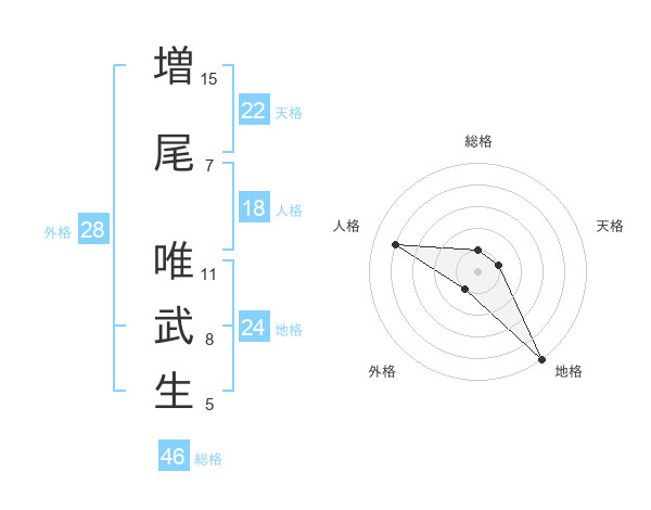増尾 唯武生さんを姓名の画数から五運を鑑定