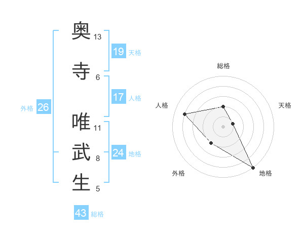 奥寺 唯武生さんの外格は26画の2点!