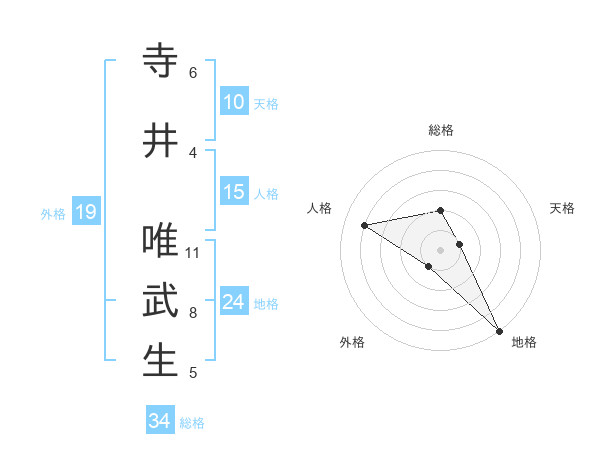 寺井 唯武生さんの総格は34画の2点!
