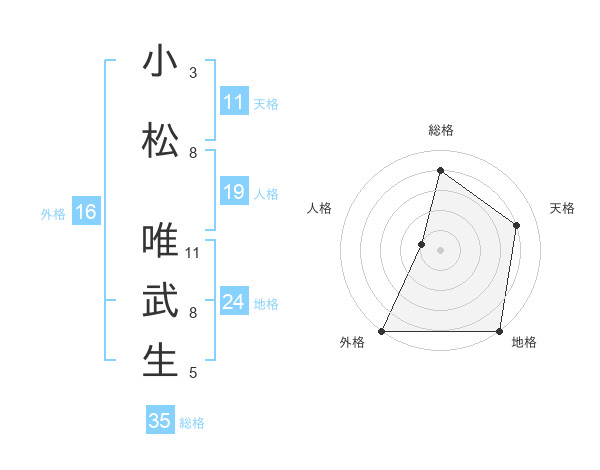 小松 唯武生さんを姓名の画数から五運を鑑定