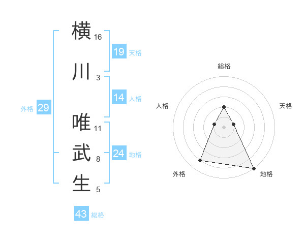 横川 唯武生さんの総格は43画の2点!