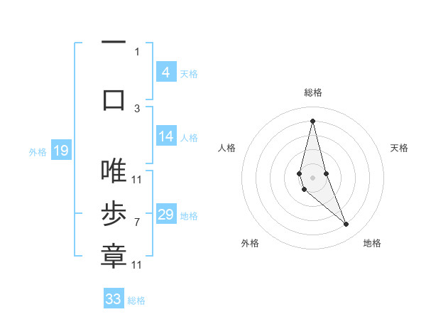 一口 唯歩章さんを姓名の画数から五運を鑑定