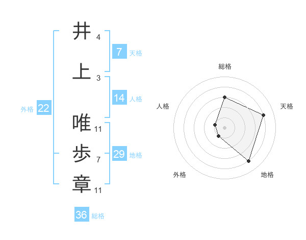井上 唯歩章さんの天格は7画の4点!