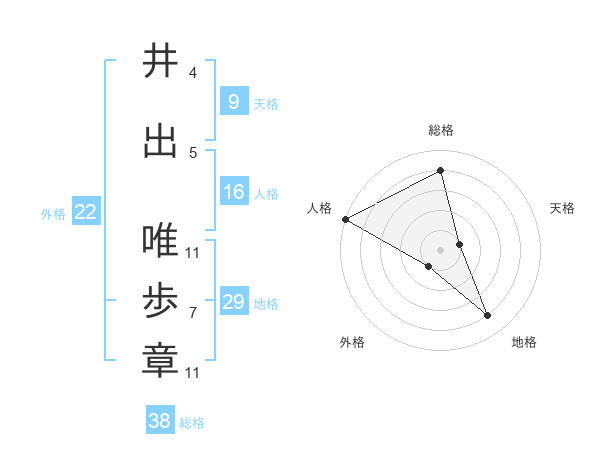 井出 唯歩章さんの総格は38画の4点!