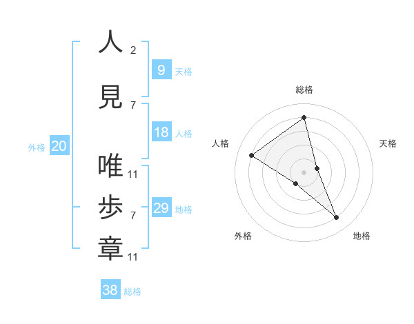 人見 唯歩章さんの総格は38画の4点!