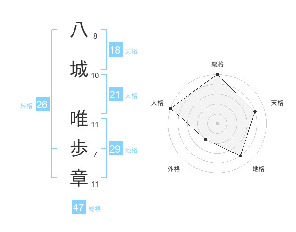 八城 唯歩章さんを姓名の画数から五運を鑑定