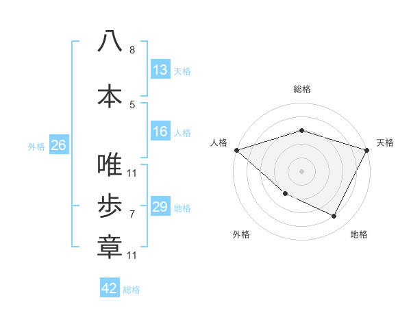 八本 唯歩章さんを姓名の画数から五運を鑑定