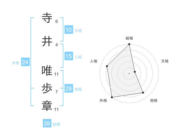 寺井 唯歩章さんの総格は39画の5点!