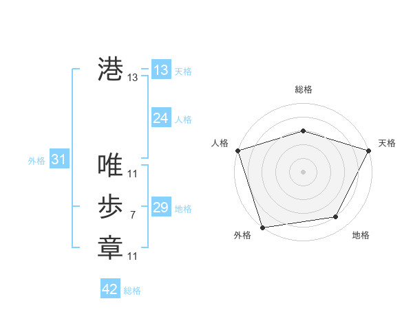 港 唯歩章さんを姓名の画数から五運を鑑定