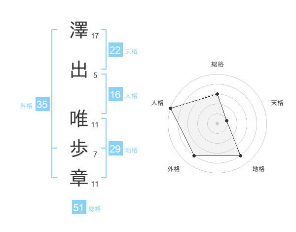 澤出 唯歩章さんの総格は51画の3点!