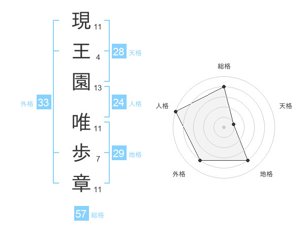 現王園 唯歩章さんを姓名の画数から五運を鑑定