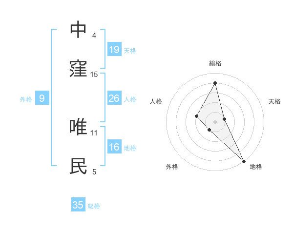 中窪 唯民さんの総格は35画の4点!