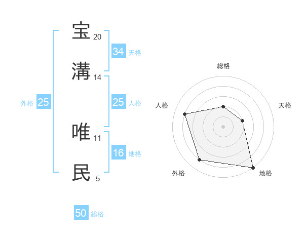 宝溝 唯民さんの総格は50画の2点!