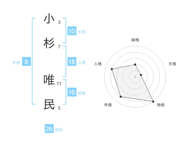 小杉 唯民さんを姓名の画数から五運を鑑定