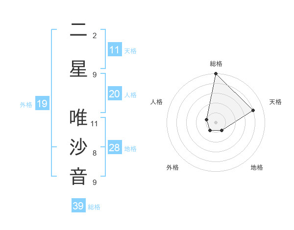 二星 唯沙音さんを姓名の画数から五運を鑑定
