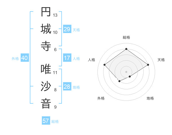 円城寺 唯沙音さんの天格は29画の4点!