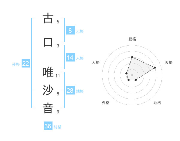 古口 唯沙音さんの天格は8画の4点!