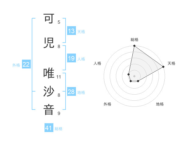 可児 唯沙音さんを姓名の画数から五運を鑑定